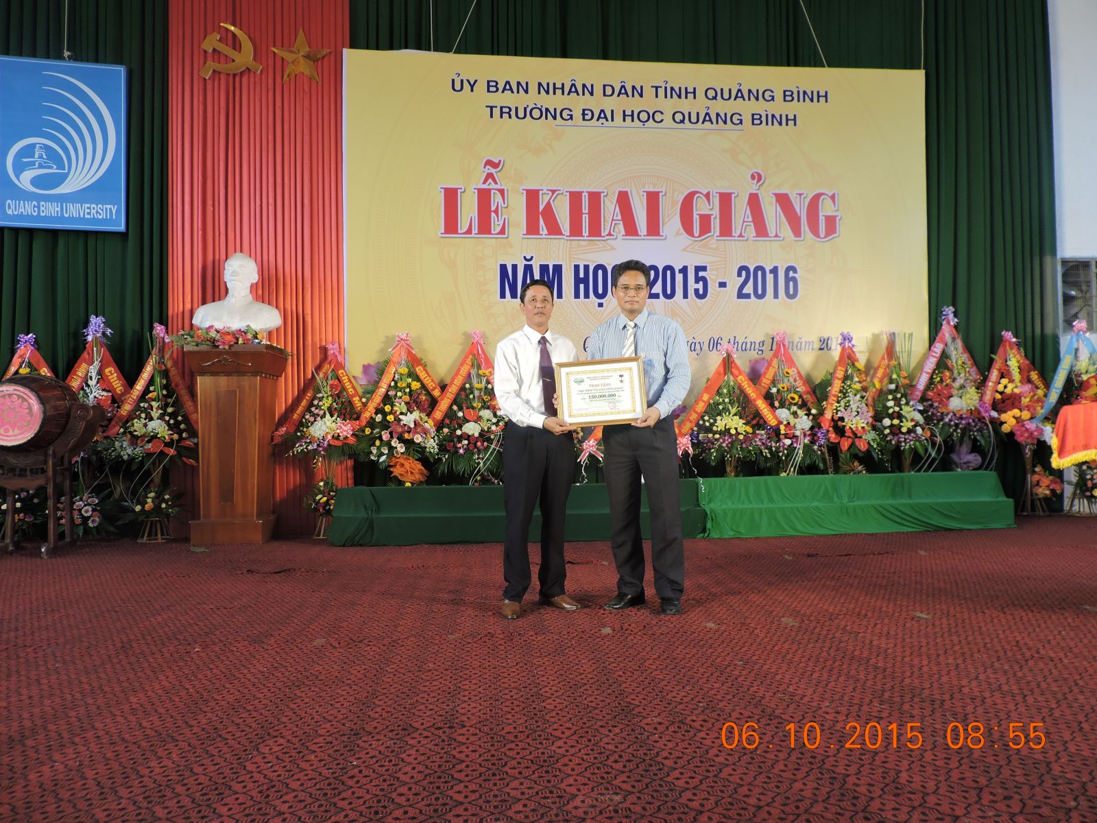 Tới dự lễ khai giảng có Lãnh đạo tỉnh Quảng Bình, các sở ban ngành, lãnh đạo các doanh nghiệp và hơn 1.500 sinh viên mới khóa 57; Tại buổi lễ ông Lê Quyết Thắng Thành viên Hội đồng Quản trị -Phó Tổng giám đốc Tổng công ty Sông Gianh đã thay mặt Lãnh đạo Tổng công ty Sông Gianh trao quà "Học bổng Tài năng Sông Gianh" cho trường Đại học Quảng Bình với số tiền là 150.000.000 đồng, Đại diện ban giám hiệu nhà trường - Phó giáo sư-Tiến Sỹ- Nhà giáo ưu tú Hiệu trưởng Trường Đại học Quảng Bình đã nhận gói học bỗng này. Học bổng tài năng Sông Gianh là món quà có nhiều ý nghĩa, hổ trợ cho lĩnh vực giáo dục của tỉnh Quảng Bình nói chung, trường Đại học Quảng Bình nói riêng, nhằm động viên sinh viên nghèo vượt khó, cố gắng vươn lên cùng cộng đồng, để hướng đến thoát nghèo, thể hiện tinh thần tương thân, tương ái, giúp đỡ nhau trong cuộc sống. Món quà này là tấm lòng của Hội đồng quản trị, Ban lãnh đạo Tổng công ty và cán bộ công nhân lao động Tổng công ty Sông Gianh gửi tặng các sinh viên nghèo học giỏi, vượt khó, là suất học bổng để các em có thêm sách vở, bút mực giảm bớt khó khăn cho gia đình.