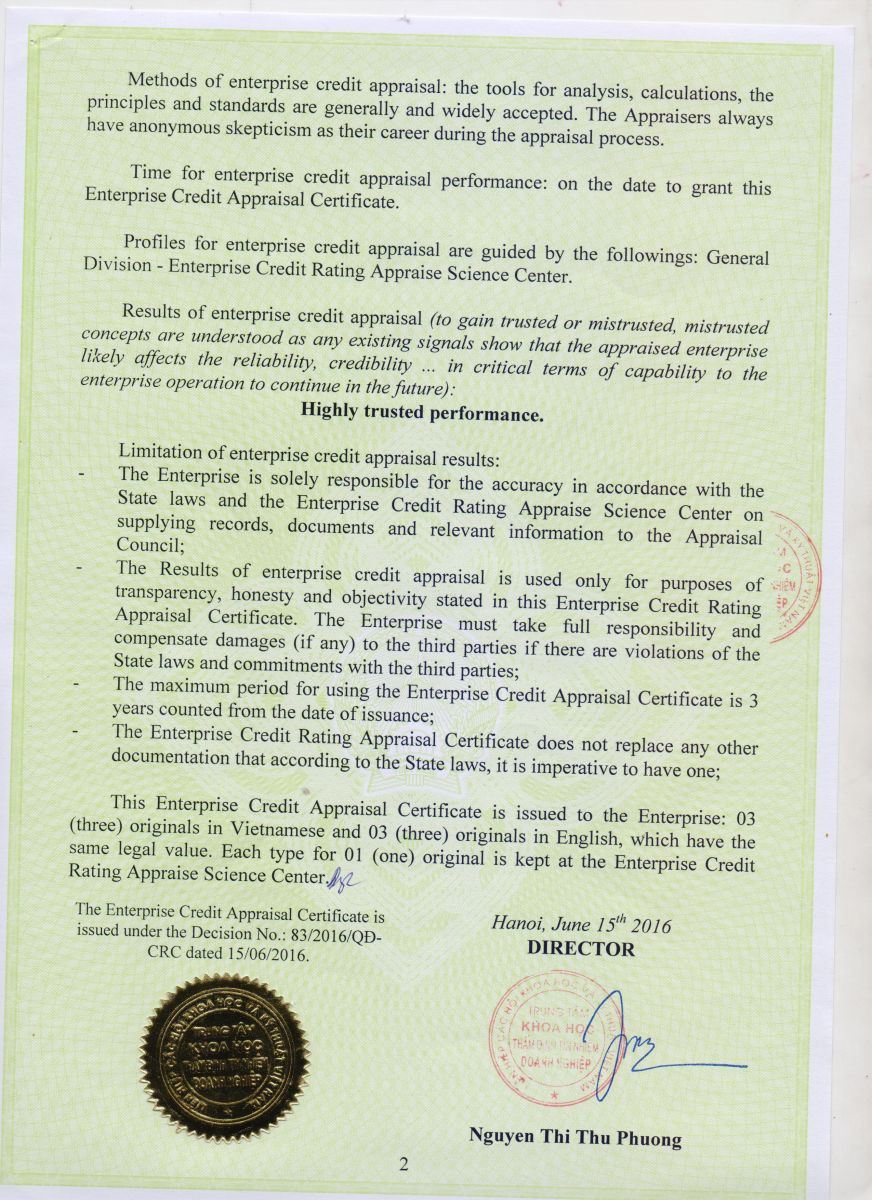 Trong nền kinh tế hiện đại, để đánh giá khả năng hoạt động của Doanh nghiệp thì thẩm định tín nhiệm giữ vai trò quan trọng. Đặc biệt, khi Việt Nam gia nhập Hiệp định Đối tác Kinh tế Chiến lược xuyên Thái Bình Dương (tiếng Anh: Trans- Pacific Strategic Economic Partnership Agreement, viết tắt TPP) và cộng đồng kinh tế ASEAN (tiếng Anh: ASEAN Economic Community, viết tắt AEC), thì thẩm đinh tín nhiệm đối với doanh nghiệp là hết sức cần thiết.