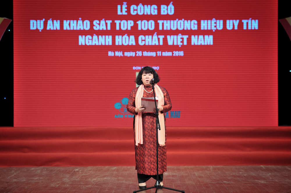 Phát biểu khai mạc, bà Đặng Thị Ngọc Thu - Tổng Biên tập Tạp chí Công Thương nhấn mạnh: Việc sở hữu một thương hiệu uy tín có ý nghĩa sống còn đối với sự phát triển của doanh nghiệp. Bên cạnh các tiêu chí doanh thu, lợi nhuận, những thương hiệu được lựa chọn phải đáp ứng các tiêu chí: Chất lượng tốt, có nhiều đóng góp cho đất ước, thực hiện tốt nghĩa vụ thuế, các chế độ với người lao động... Từ 100 thương hiệu do Ban thư kí tổng hợp, Hội đồng thẩm định đã chọn ra 60 thương hiệu đáp ứng được các tiêu chí để công bố tại buổi lễ. Dự án Khảo sát, xếp hạng và công bố TOP 100 “Thương hiệu uy tín ngành Hóa chất Việt Nam” năm 2016 trong hội nhập kinh tế quốc tế là cơ hội lớn cho các thương hiệu của các doanh nghiệp ngành Hóa chất Việt Nam khẳng định năng lực cạnh tranh và nâng cao uy tín doanh nghiệp của mình trên thị trường trong nước và quốc tế.