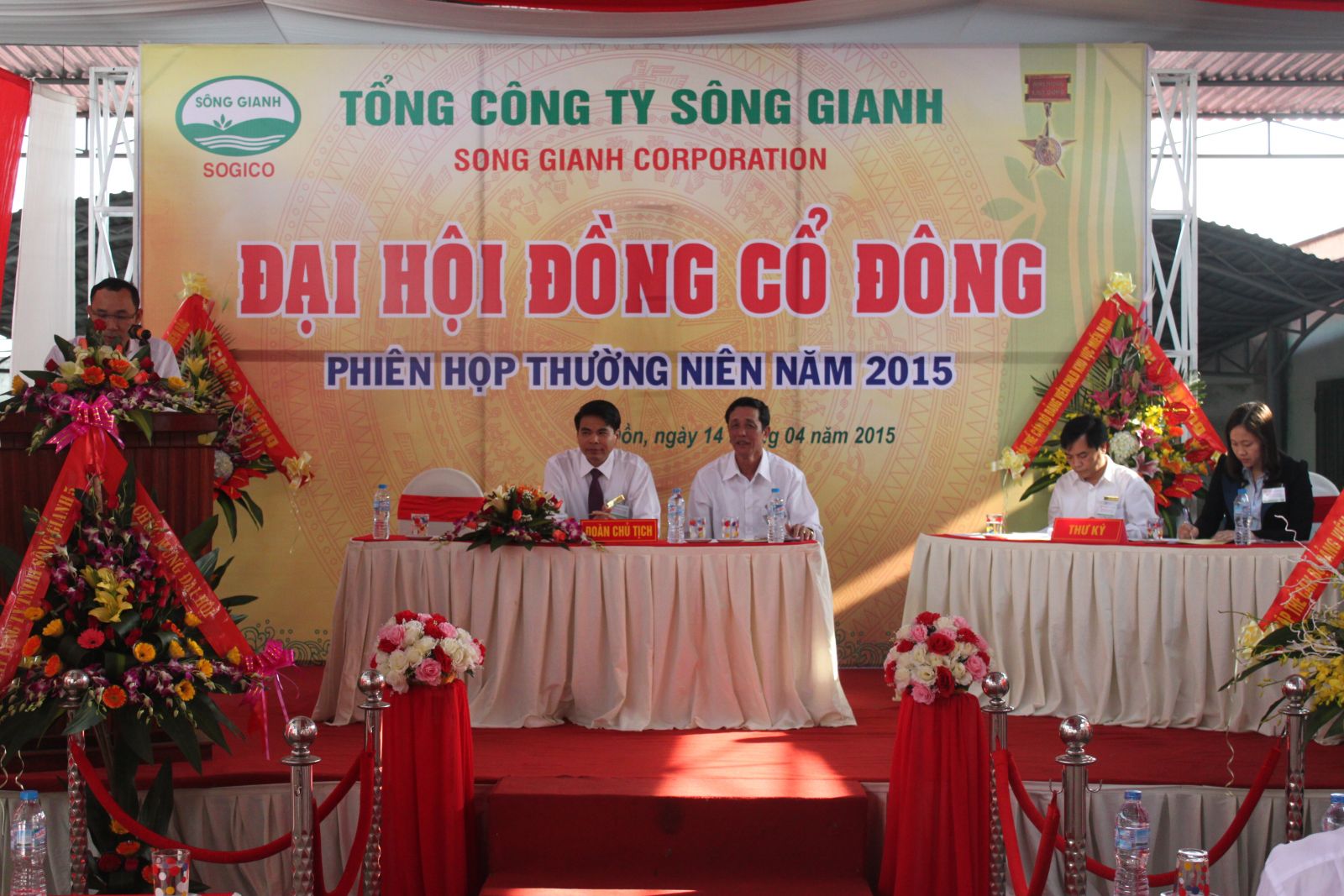 Ngày 14 tháng 4 năm 2015, tại hội trường Tổng công ty Sông Gianh đã tiến hành Đại hội đồng cổ đông thường niên năm 2015. Tham dự Đại hội có 38 cổ đông, sở hữu và đại diện sở hữu cho 95,29% cổ phần.