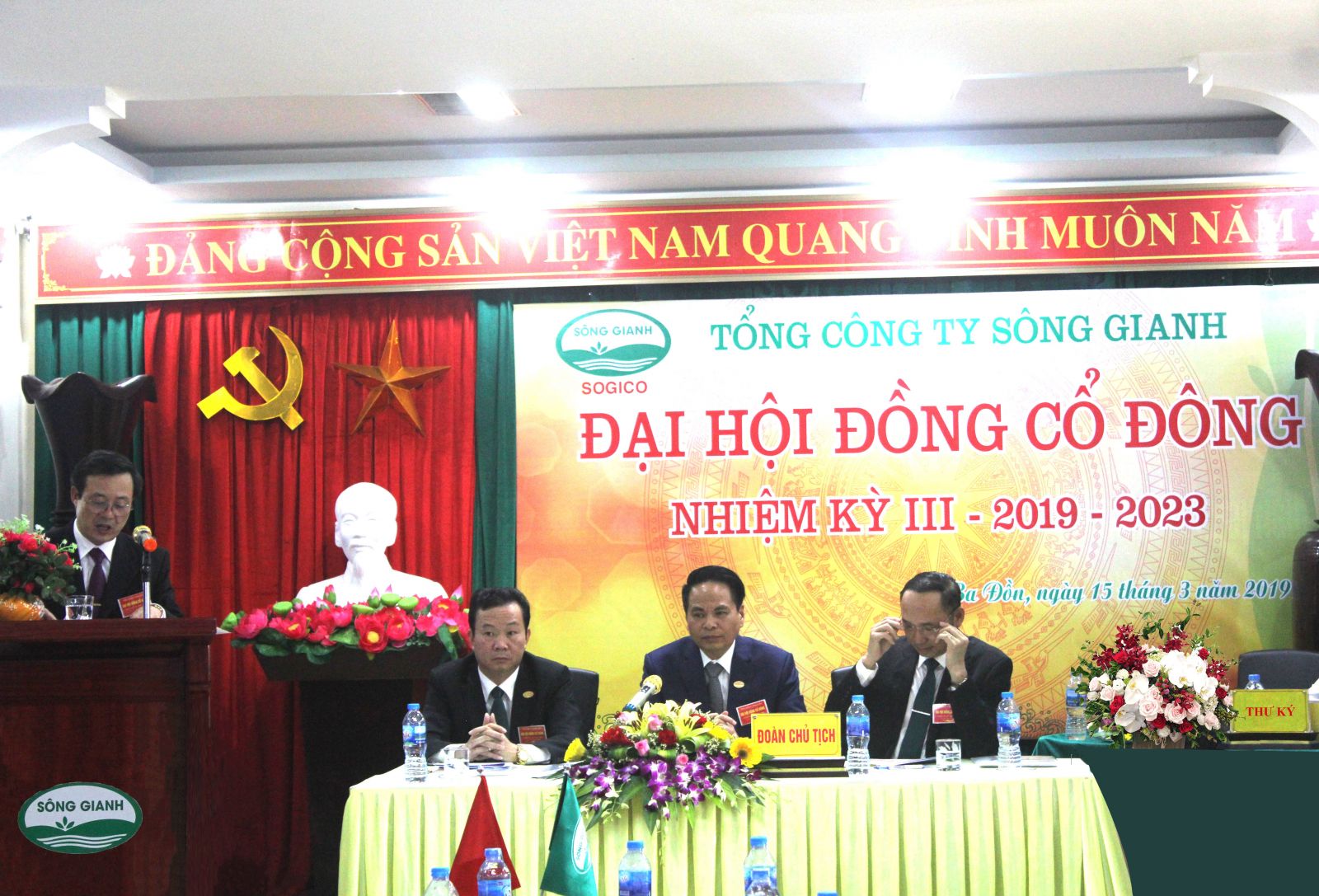 Phát biểu khai mạc Đại hội, Ông Biền Văn Nga – Chủ tịch HĐQT, Tổng giám đốc nhấn mạnh rằng “Với lịch sử 30 năm hình thành và phát triển Công ty đã trải qua nhiều bước thăng trầm, biến cố, những lúc khó khăn nhất chúng ta đã thể hiện bản lĩnh kiên cường, vượt khó để vươn lên tất cả. Đặc biệt 10 năm sau cổ phần hóa đã giúp cho Tổng công ty Sông Gianh có một sức bật mới, sự tự tin cũng như một tập thể làm chủ thực sự, trong bối cảnh nhân lực có nhiều thay đổi, khó khăn thách thức lớn bởi những biến động phức tạp của thị trường, kinh tế trong nước và thế giới. Tổng công ty đã vượt lên mọi khó khăn, hoàn thành xuất sắc các mục tiêu, nhiệm vụ mà Nghị quyết Đại hội đồng cổ đông đã giao, đưa Tổng công ty Sông Gianh sang trang mới, tạo ra thế và lực mới, thực hiện kế hoạch phát triển giai đoạn 2019 – 2023 và những năm tiếp theo.”