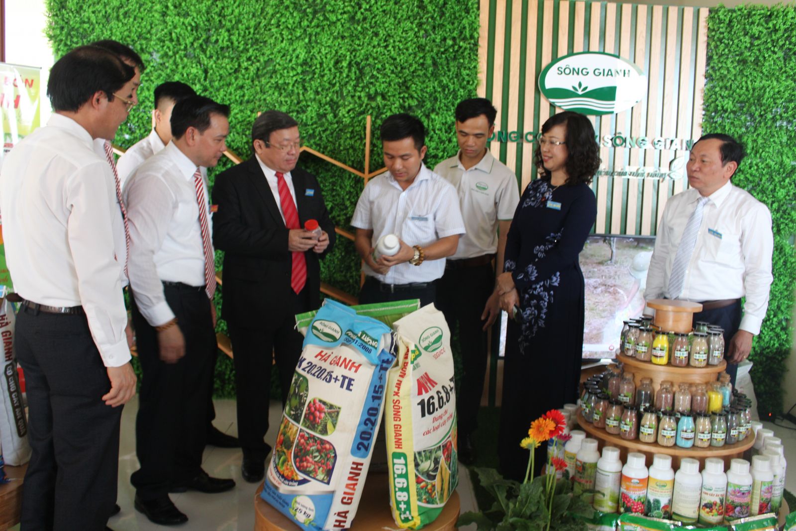 Đồng chí Thào Xuân Sùng -Uỷ viên BCH TW Đảng, Chủ tịch BCH TW Hội Nông dân Việt Nam cùng các đại biểu thăm gian hàng trưng bày sản phẩm của Tổng công ty Sông Gianh