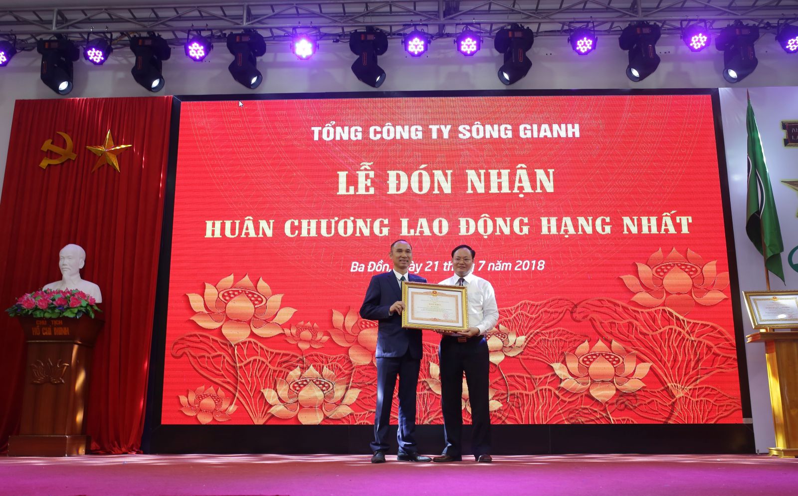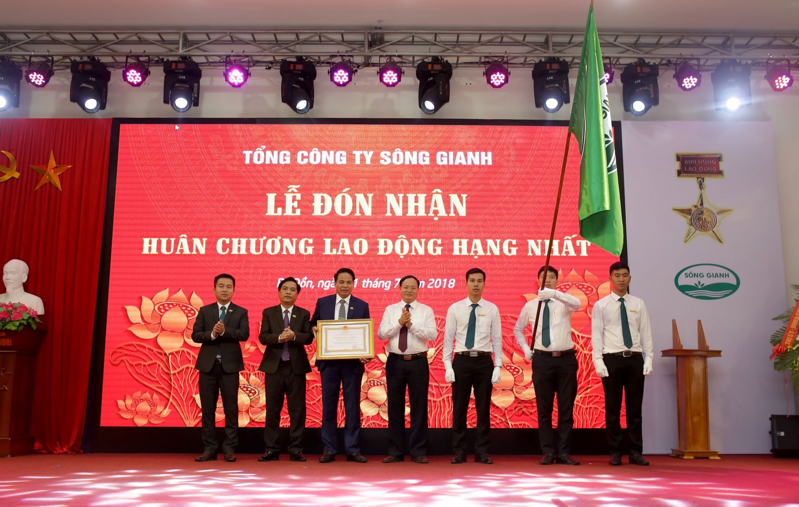 Ngày 21/7/2018, Tổng Công ty Sông Gianh long trọng tổ chức Lễ đón nhận Huân chương Lao động hạng Nhất do Đảng và Nhà nước trao tặng. Tới dự buổi lễ có đồng chí Lê Minh Ngân, Tỉnh ủy viên, Phó Chủ tịch UBND tỉnh; đồng chí Lương Ngọc Bính, nguyên Ủy viên Trung ương Đảng, nguyên Bí thư Tỉnh ủy, nguyên Chủ tịch HĐND tỉnh; đại diện lãnh đạo các sở, ban, ngành địa phương; các doanh nghiệp đối tác và đại diện cán bộ, công nhân viên của các đơn vị.
