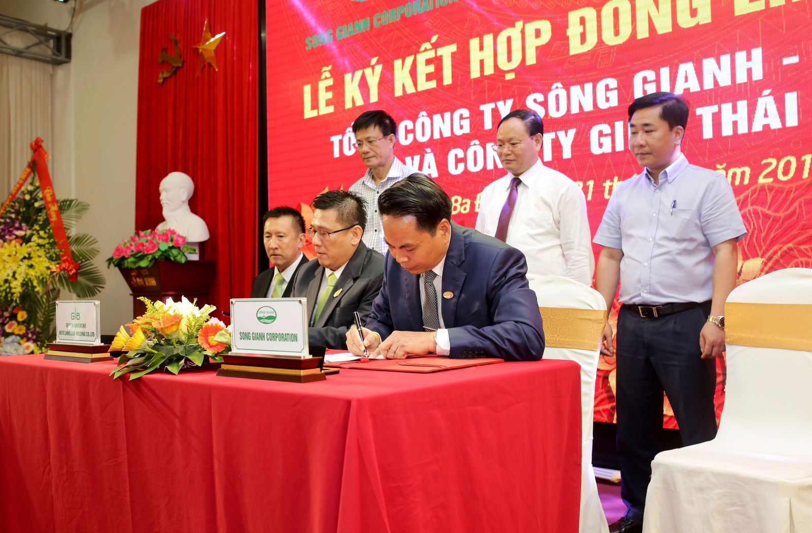 Cũng trong chương trình buổi lễ, Tổng công ty Sông Gianh cùng với Công ty GIB- Thái Lan ký kết hợp đồng liên doanh đầu tư sản xuất phân bón lá sinh học phục vụ sản xuất nông nghiệp công nghệ cao, nông nghiệp hữu cơ.