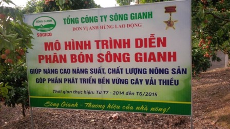 Vào sáng ngày 4/6/2015, tại xã Giáp Sơn, huyện Lục Ngạn, tỉnh Bắc Giang đã diễn ra Hội nghị tổng kết mô hình trình diễn Sử dụng phân bón Sông Gianh cho cây vải thiều.