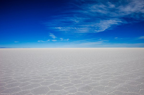 Không ai có thể nghĩ đến muối như một điều ngoạn mục, trừ khi anh ấy hoặc cô ấy đã từng thấy cánh đồng muối của Salar de Uyuni ở Bolivia. Trong suốt mùa khô, chỉ đơn giản là vùng rộng màu trắng bao phủ hết cánh đồng cũng thật tuyệt vời. Nó có thể biến thành một tấm gương khổng lồ, và bất cứ ai đi bộ cũng có cảm giác như đang đi bộ giữa những đám mây. Ánh mặt trời phản chiếu khá mạng trên cánh đồng, nên hãy chắc chắn mang theo kính râm nếu như bạn có mong muốn đến tham quan cánh đồng muối này.