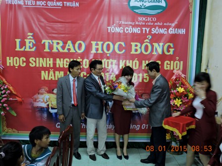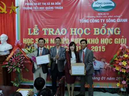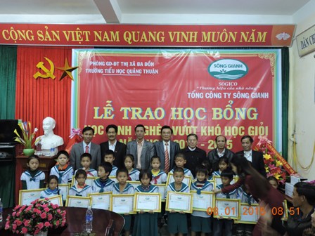 Sáng ngày 8/01/2015 Công ty cổ phẩn Tổng công ty Sông Gianh đã tổ chức lễ trao quà “Học bổng Sông Gianh” cho học sinh trường tiểu học Quảng Thuận, thị xã Ba Đồn, tỉnh Quảng Bình.